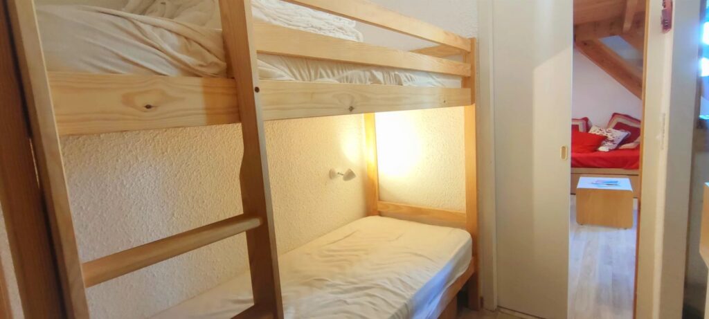 6 couchages (2 lits superposés coin montagne, 1 clic clac séjour, 1 lit 140 mezzanine, salle d’eau WC.