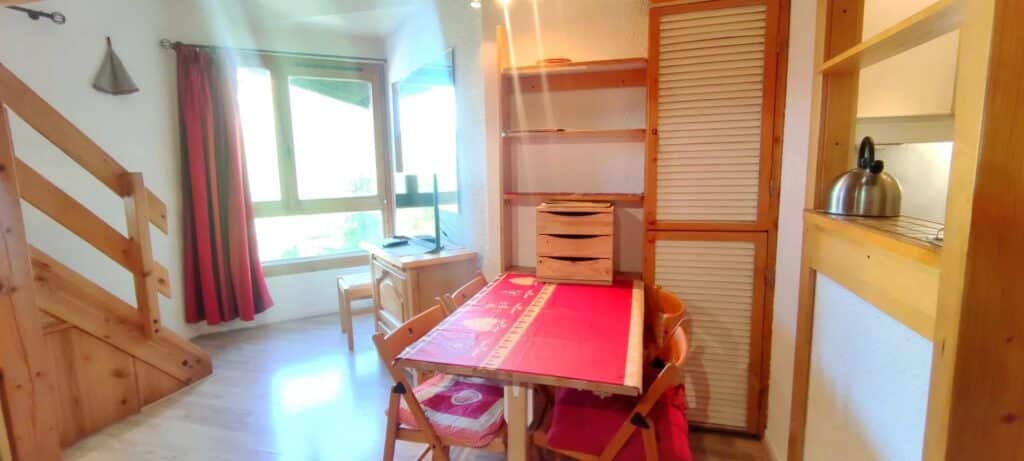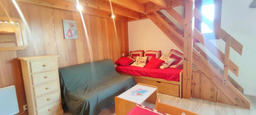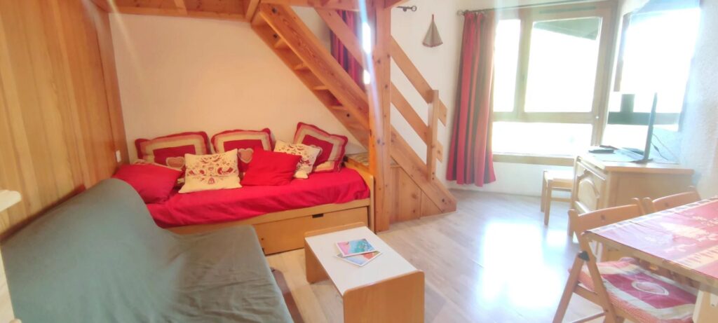 PR711 2 Pièces mezzanine situé dans un immeuble chalet situé au coeur du « Hameau » (versant sud station), à 15 mn à pied du centre station.