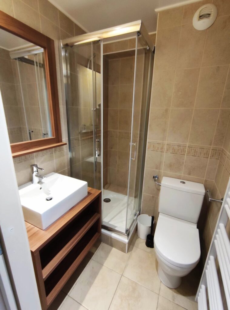Il renferme 2 chambres avec 1 lit de 160, un séjour avec canapé-lit 160. Cuisine américaine et un coin repas, wc indépendant, une salle de bain, 1 salle d’eau/WC.