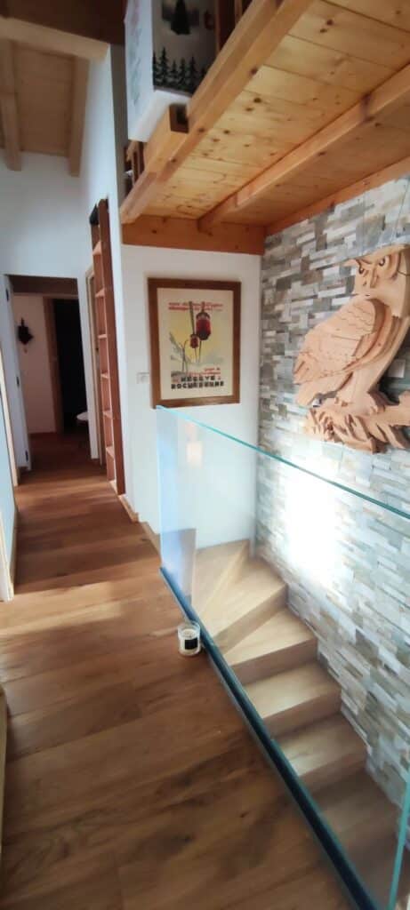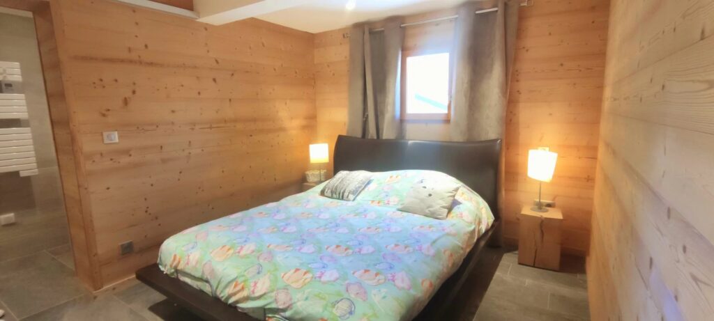 CM26 Magnifique chalet individuel de 150 m², entièrement rénové, de qualité haut de gamme, comprenant 5 chambres, 2 salles de bains, 2 salles d’eau, salon salle à manger avec cheminée et terrasse, cuisine américaine, situé sur les hauteurs de la station, avec vue panoramique sur les pistes et la montagne. Garage dans le chalet + 1 parking.