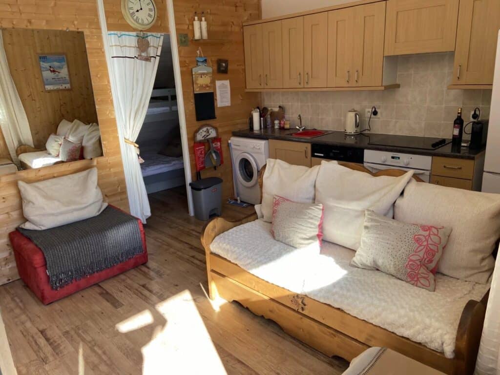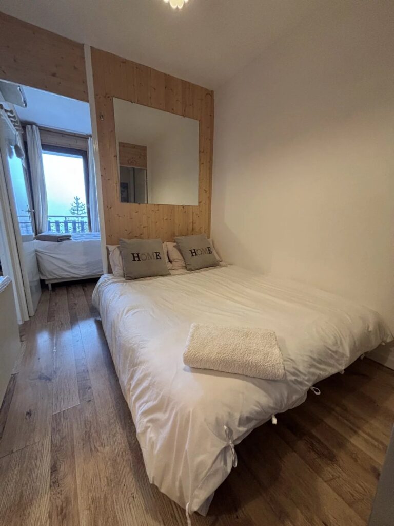 Proche centre, petit 3 pièces de 32m² environ, équipé 6 personnes. Une entrée avec coin nuit, une chambre avec 1 lit double, une chambrette enfant avec lit superposé, un salon donnant sur une terrasse Sud. Une salle de bains , un W.C Indépendant. Casier à skis.