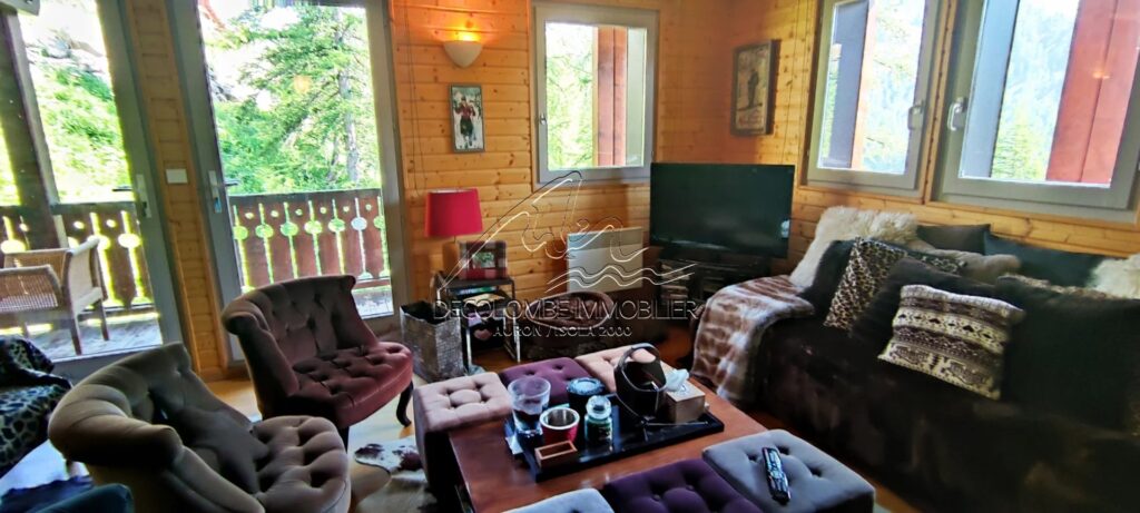 Sur un terrain d’environ 11 ares, chalet édifié sur 3 niveaux, avec accès très facile ski et commerces, d’une superficie utile de 113.64 m², il se compose: en RDC, abri voiture et garage avec grenier, hall d’entrée, local à skis, 1 chambre, avec un balcon, 1 bureau et 1 salle de bains/wc. Au niveau intermédiaire, séjour avec cheminée donnant sur terrasse, cuisine américaine, salle à manger et un wc. Au rez de neige, 2 chambres donnant sur terrasse, 1 salle de douche/sauna, wc séparés. Possibilité agrandissement (permis déposé valable jusqu’au 2029). Pas de charges