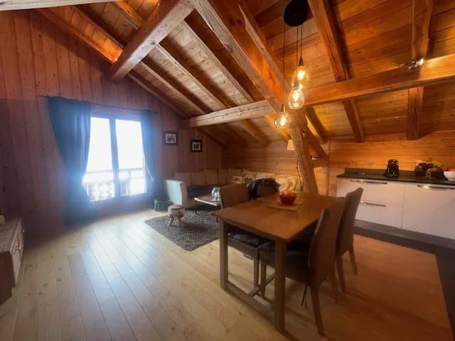 Magnifique Chalet individuel sur 3 niveaux, d’une superficie d’environ 247m² habitables et terrasse de 100 m2, vue panoramique sur le domaine skiable, ensoleillement exceptionnel, terrain d’environ 600 m2. Construction en 2008/2009 (Chalet Bayrou), ossature et bardage en Mélèze avec sous bassement béton et pierre. Chauffage au sol électrique. Vaste espace de stockage de RDC de 85m². Au 1er étage un appartement de 85m² avec 3 chambres, séjour, cuisine équipée, salle de bains. Actuellement en activité professionnelle.