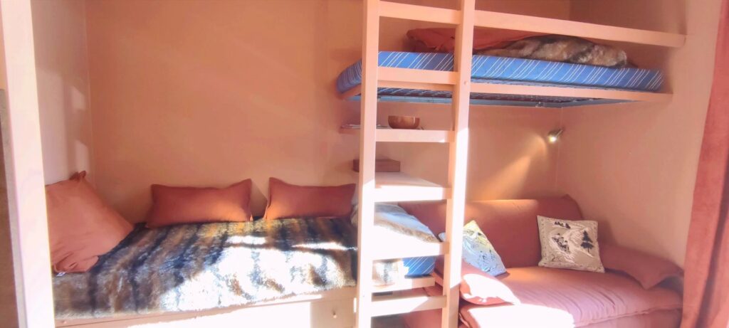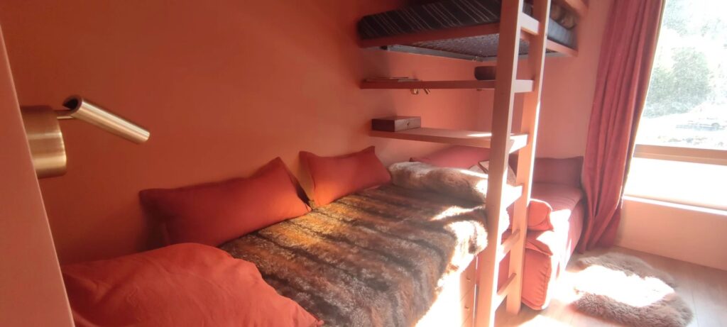 TVB19 petit studio rénové, situé au 2ème étage avec fenêtre, orienté est. Immeuble situé dans l’ensemble « Front de Neige », au pied des pistes, au dessus de la Galerie Marchande et des activités de la station. Dans le salon canapé lit 140 et 2 lits simples en hauteur. Salle de bains WC, Cuisine toute équipée.