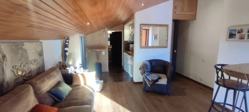 Prés du parcours de sante , dans une résidence avec ascenseur. Joli studio cabine de 31 m² au sol. Comprenant, coin nuit, placards, séjour avec coin cuisine et terrasse avec une vue imprenable sur le domaine skiable. Salle de bain avec W.C. Ce bien est vendu avec un casier à skis et un garage fermé. Navettes gratuites.