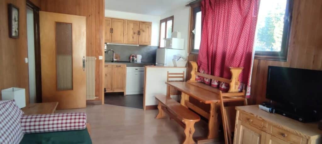 Deux pièces cabine de 36m² dans une résidence avec ascenseur, gardien et proche de la foret. Comprenant cabine avec 3 lits superposés, une chambre avec un lit double, placard donnant sur la terrasse Est. Un séjour cuisine avec cheminée donnant sur la terrasse. Salle d’eau et W.C Ind.